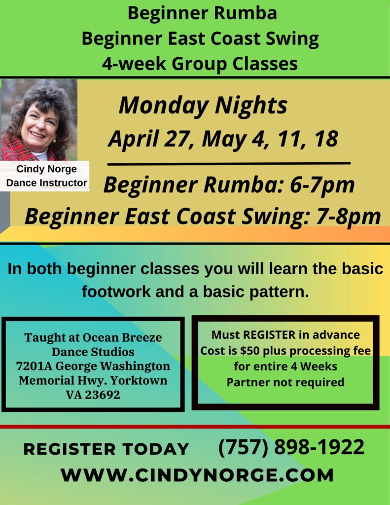 Beginner Rumba & East Coast Swing 4-week group classes.